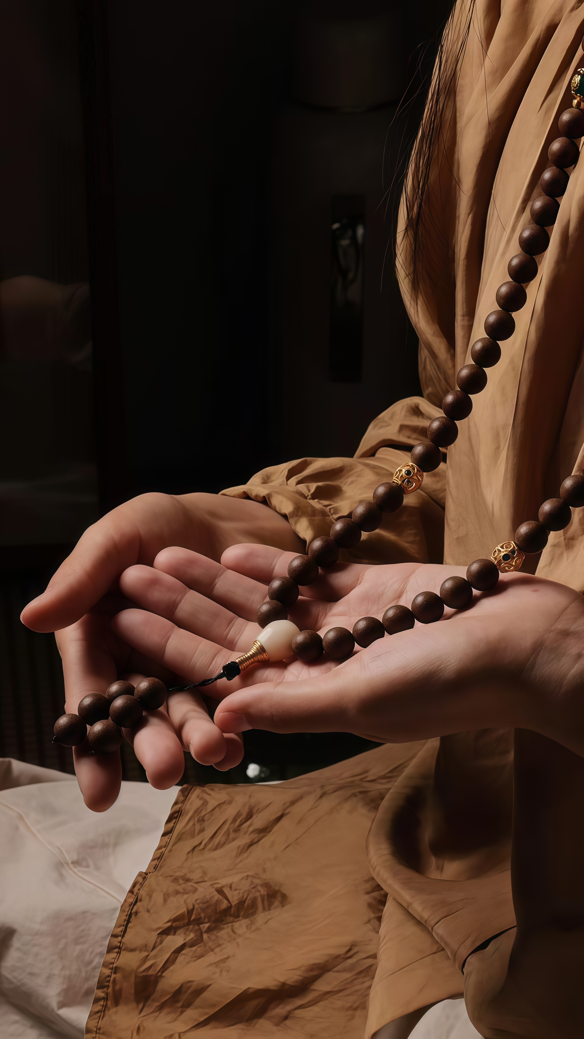 • The Ritual (Jìngxīn): Before you check your phone, engage in the "First Tactile Contact." Put on your beads. As the cool botanicals warm against your pulse (Qi), visualize a protective seal forming around your energy.